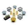 Las piezas de este set tienen un tamaño de base similar a las losetas de cartón que incluye el juego. Los portales tienen un espacio para colocar las fichas originales fácilmente.